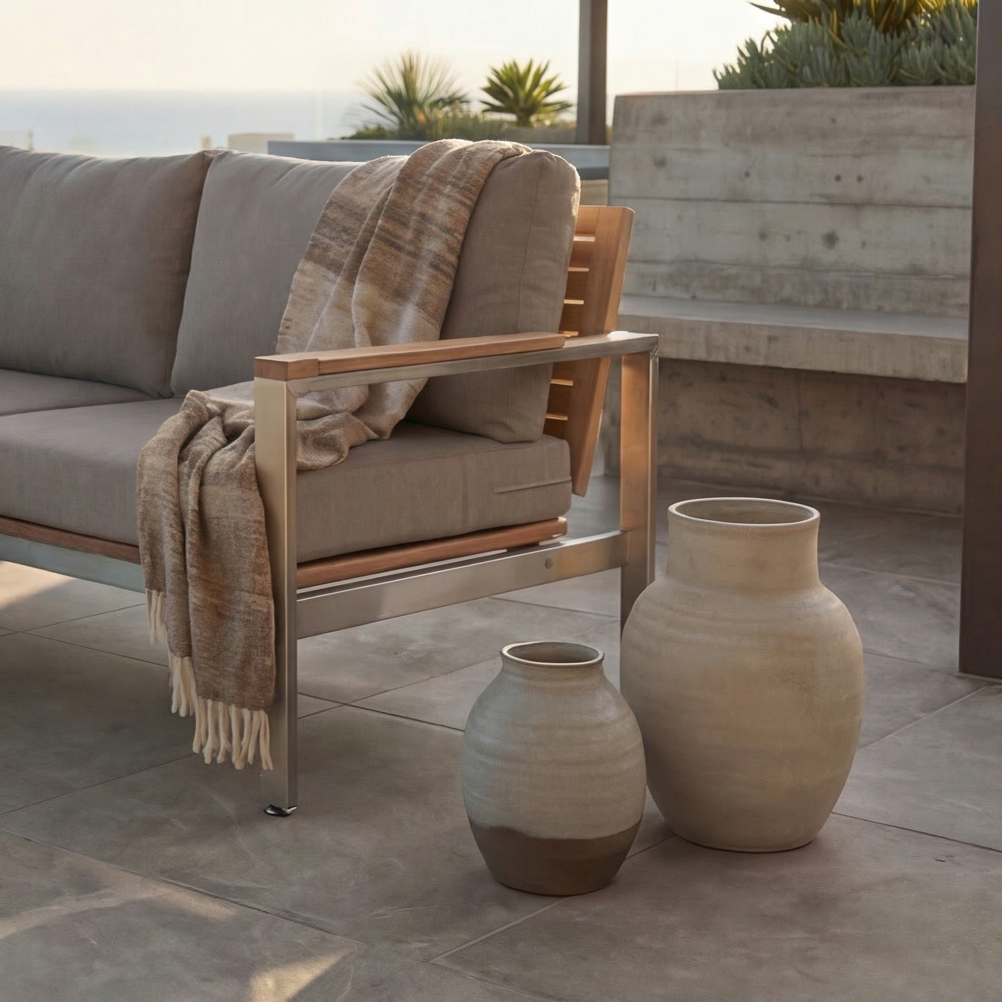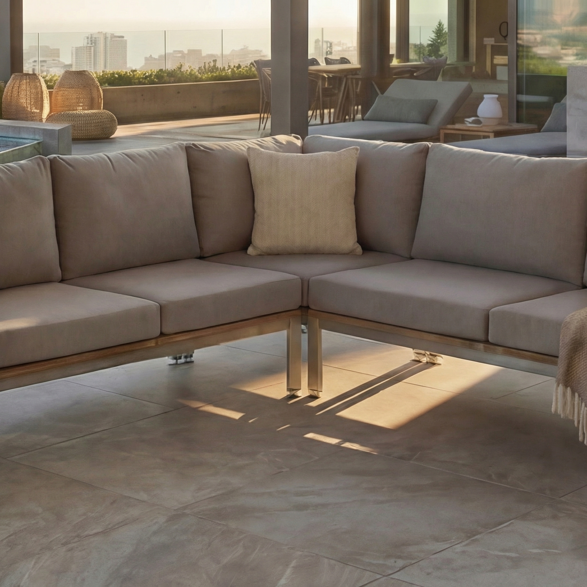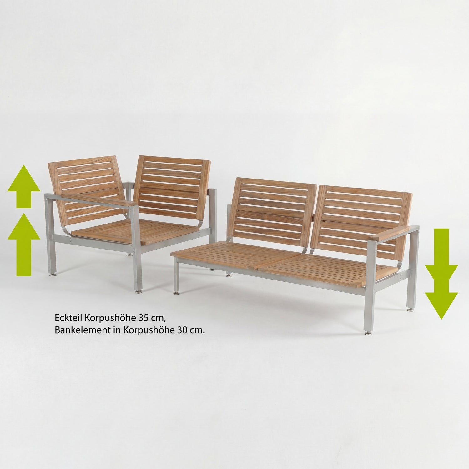 Um dem stetigen Wunsch unserer Kunden nach einer Loungegruppe, die wahlweise als Lounge oder als Bank zu einem Esstisch verwendet werden kann, zu entsprechen, haben wir für unsere Centauri Lounge Serie eine Zwischenhöhe von 35 cm konzipiert. Mit unserer einheitlichen Polsterhöhe von 12 cm ergibt sich eine rechnerische Sitzhöhe von 47cm, zieht man davon den Stauchfaktor der Polster ab so sitzt man etwas tiefer als auf einer normalen Sitzbank.