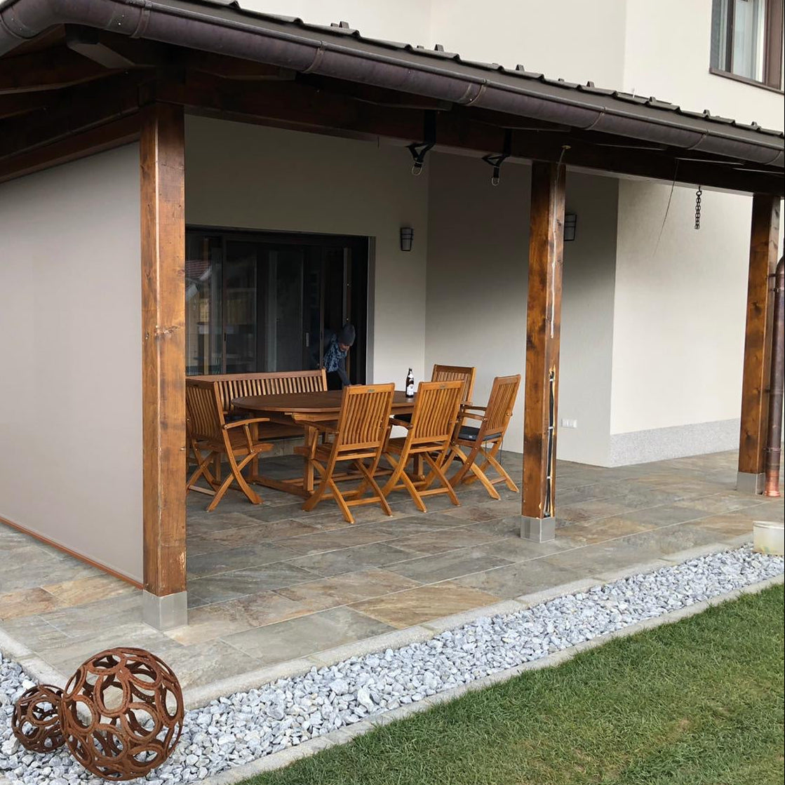 Naturmaterialien verändern sich mit der Zeit. Dazu zählen etwa die Vergrauung von Teakholz, leichte Farbveränderungen durch Sonne und Witterung oder feine Spannungsrisse im Holz. Diese Merkmale sind materialtypisch und Ausdruck der Echtheit des Materials.